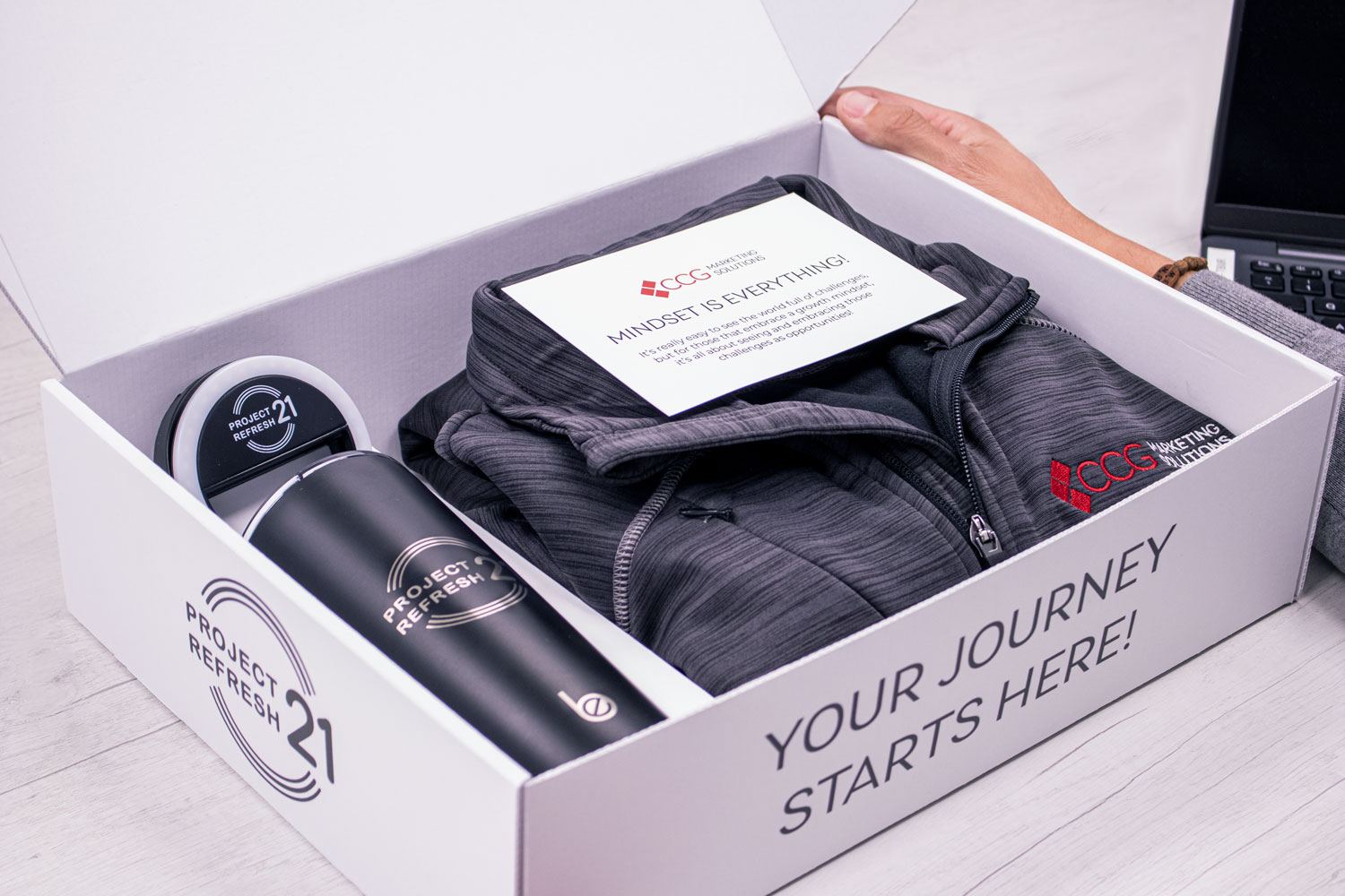 By leveraging our Creative Studio, CCG is able to create unique and engaging New Hire Kits that guarantees a successful onboarding experience. From designing the packaging, selecting the Branded Merchandise & Premiums items included, determining the best placement of products and consistent distribution of kits stored in inventory - your next onboarding initiative will be successful and memorable.